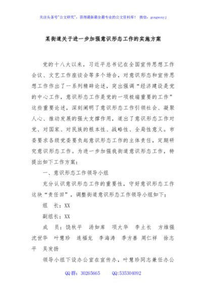 / 某街道关于进一步加强意识形态工作的实施方案