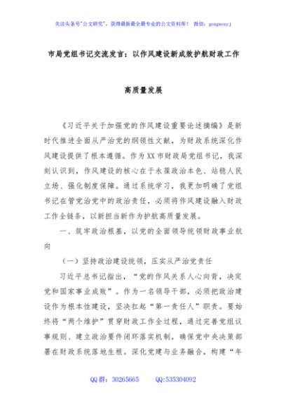 市局党组书记交流发言:以作风建设新成效护航财政工作高质量发展