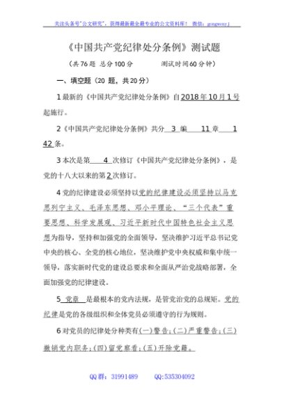 / 《中国共产党纪律处分条例》测试题