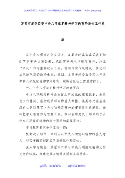 / 某某市纪委监委中央八项规定精神学习教育阶段性工作总结