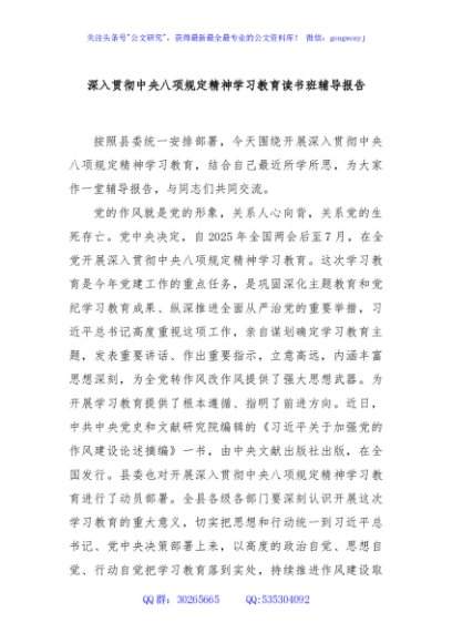 / 深入贯彻中央八项规定精神学习教育读书班辅导报告