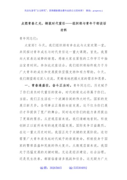 / 点燃青春之光,铸就时代重任——组织部与青年干部谈话材料