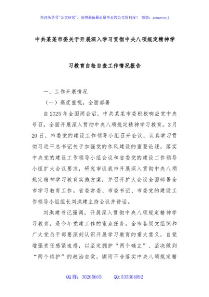 / 中共某某市委关于开展深入学习贯彻中央八项规定精神学习教育自检自查工作情况报告