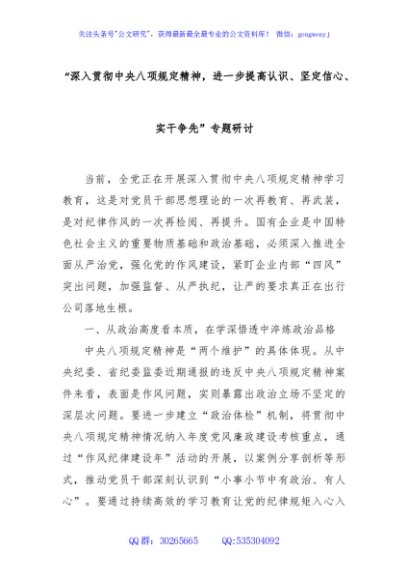 / “深入贯彻中央八项规定精神,进一步提高认识、坚定信心、实干争先”专题研讨