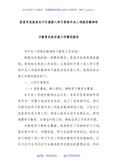 / 某某市民政局关于开展深入学习贯彻中央八项规定精神学习教育自检自查工作情况报告