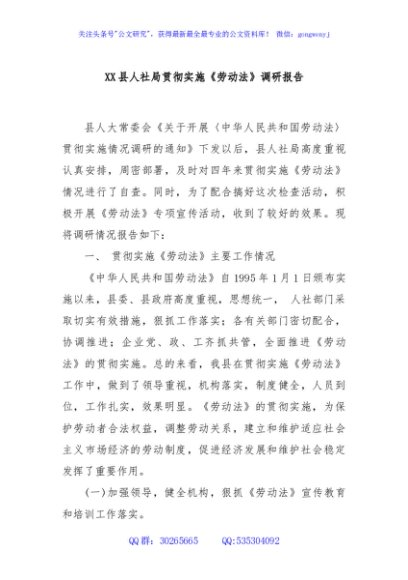 / XX县人社局贯彻实施《劳动法》调研报告