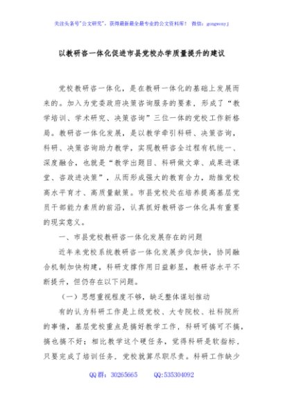 / 以教研咨一体化促进市县党校办学质量提升的建议
