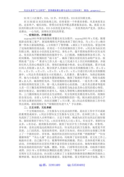 / 市三八红旗手事迹材料(社区妇联主席)