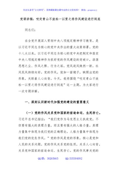 / 党课讲稿:咬定青山不放松一以贯之将作风建设进行到底