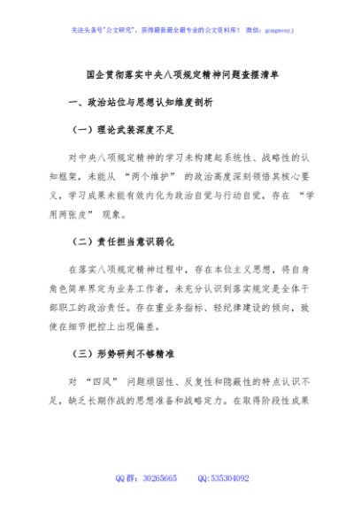 / 国企贯彻落实中央八项规定精神问题查摆清单