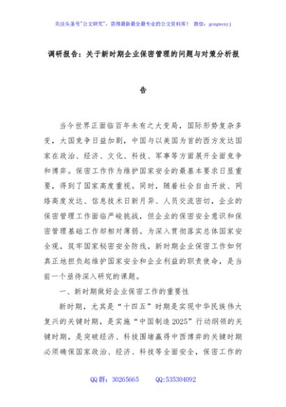 / 调研报告:关于新时期企业保密管理的问题与对策分析报告