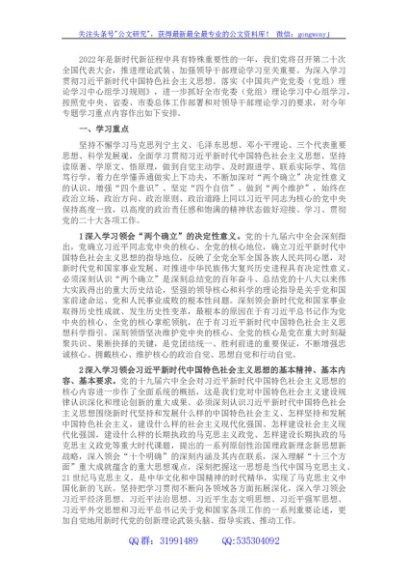 / 2022年全市党委(党组)理论学习中心组专题学习方案