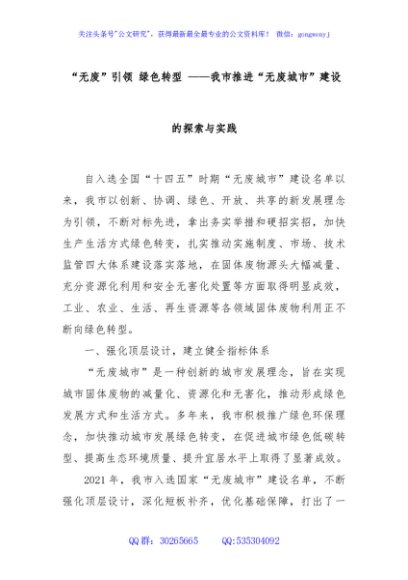 / “无废”引领 绿色转型 ——我市推进“无废城市”建设的探索与实践