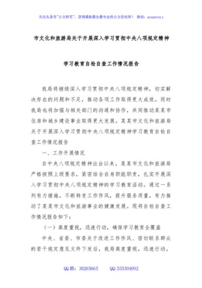 / 市文化和旅游局关于开展深入学习贯彻中央八项规定精神学习教育自检自查工作情况报告