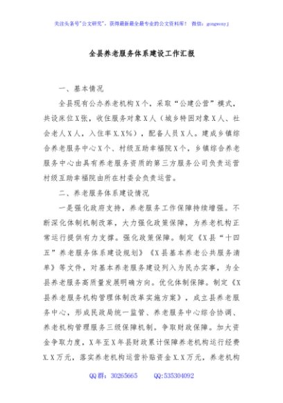 / 全县养老服务体系建设工作汇报