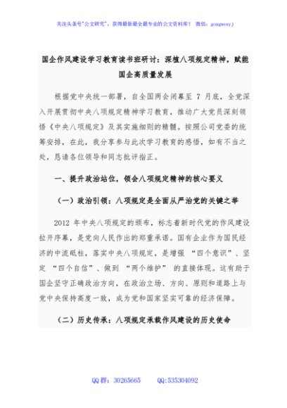 / 国企作风建设学习教育读书班研讨:深植八项规定精神,赋能国企高质量发展