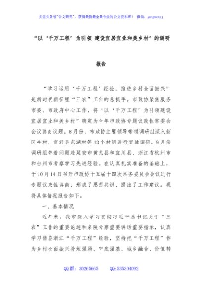 / “以‘千万工程’为引领 建设宜居宜业和美乡村”的调研报告