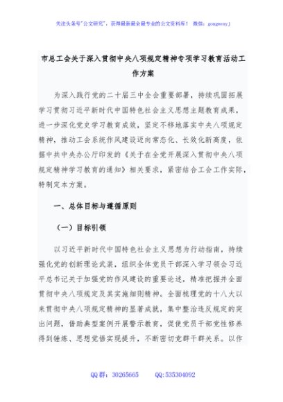/ 市总工会关于深入贯彻中央八项规定精神专项学习教育活动工作方案