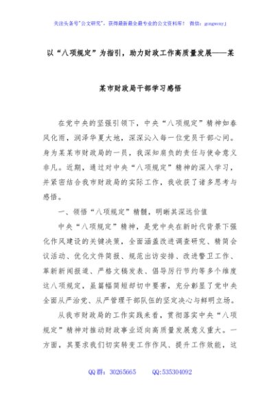 / 以 “八项规定” 为指引,助力财政工作高质量发展 —— 某某市财政局干部学习感悟