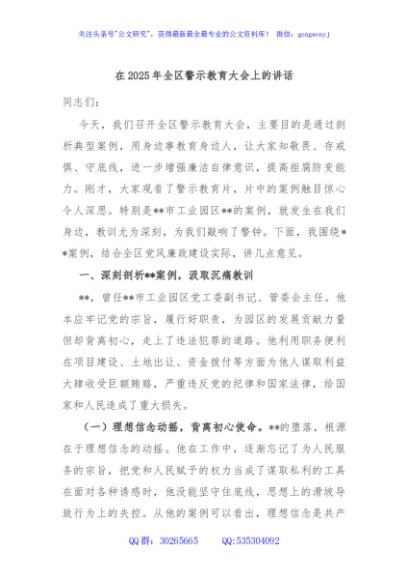 / 在2025年全区警示教育大会上的讲话