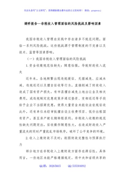 / 调研报告—非税收入管理面临的风险挑战及影响因素