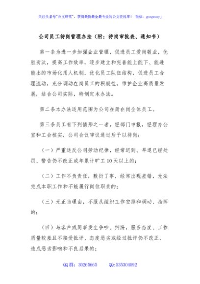 / 公司员工待岗管理办法(附:待岗审批表、通知书)