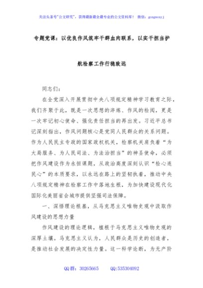 / 专题党课:以优良作风筑牢干群血肉联系,以实干担当护航检察工作行稳致远