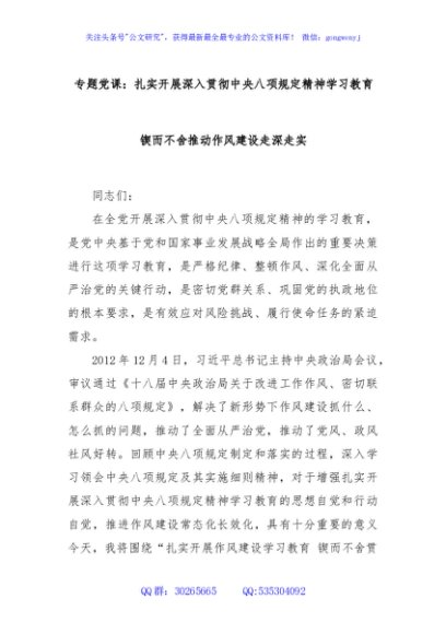 / 专题党课:扎实开展深入贯彻中央八项规定精神学习教育 锲而不舍推动作风建设走深走实