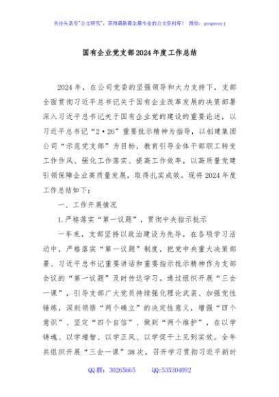 / 国有企业党支部2024年度工作总结