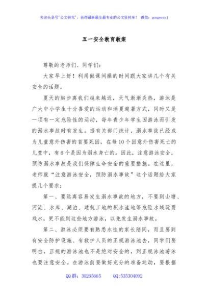 / 五一安全教育教案