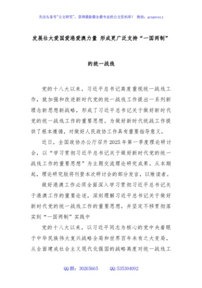 / 发展壮大爱国爱港爱澳力量 形成更广泛支持“一国两制”的统一战线