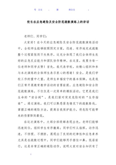 / 校长在应急避险及安全防范疏散演练上的讲话