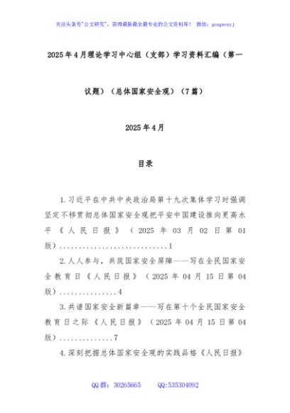 / (7篇)2025年4月理论学习中心组(支部)学习资料汇编(第一议题)(总体国家安全观)