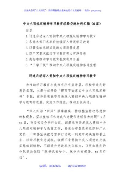 / (6篇)中央八项规定精神学习教育经验交流材料汇编