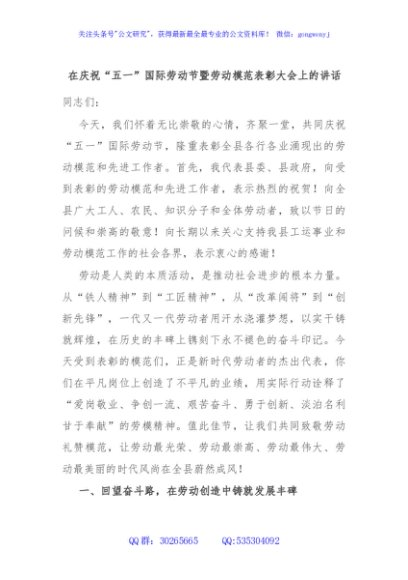 / 在庆祝“五一”国际劳动节暨劳动模范表彰大会上的讲话
