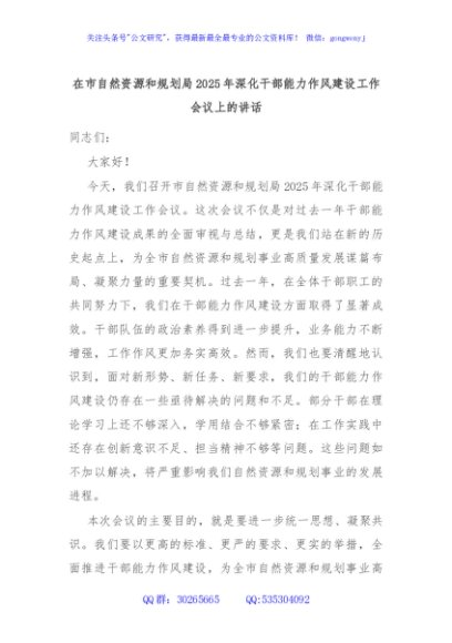 / 在市自然资源和规划局2025年深化干部能力作风建设工作会议上的讲话
