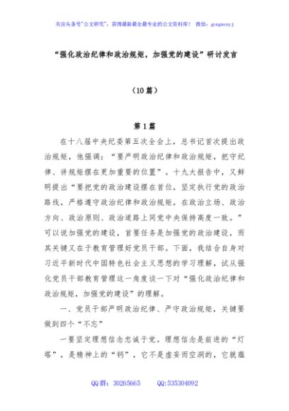 / (10篇)“强化政治纪律和政治规矩,加强党的建设”研讨发言