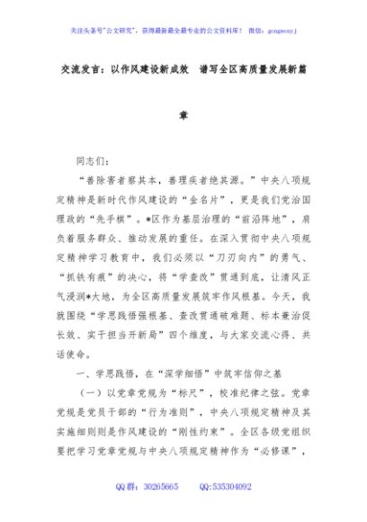 / 交流发言:以作风建设新成效 谱写全区高质量发展新篇章