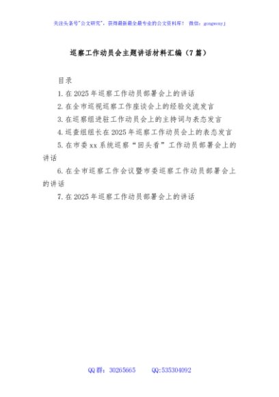 / (7篇)巡察工作动员会主题讲话材料汇编
