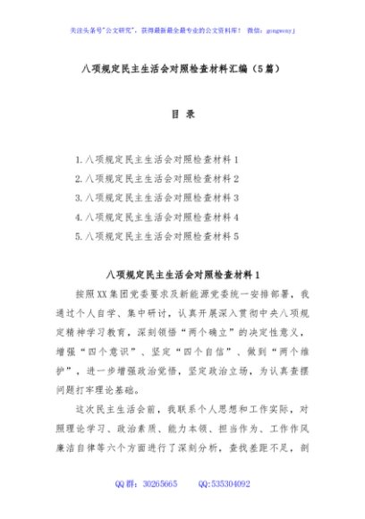 / (5篇)八项规定民主生活会对照检查材料汇编