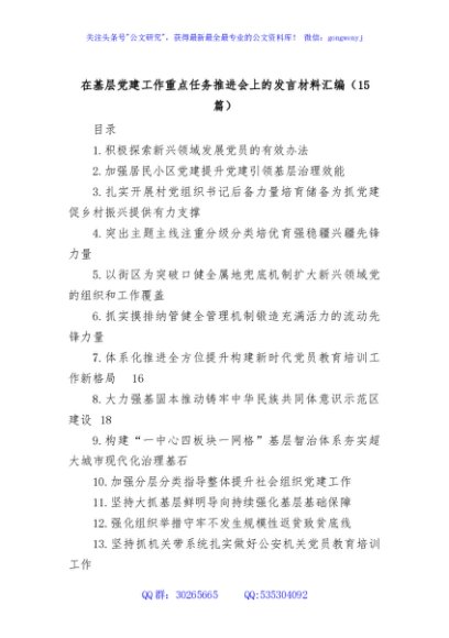 (15篇)在基层党建工作重点任务推进会上的发言材料汇编
