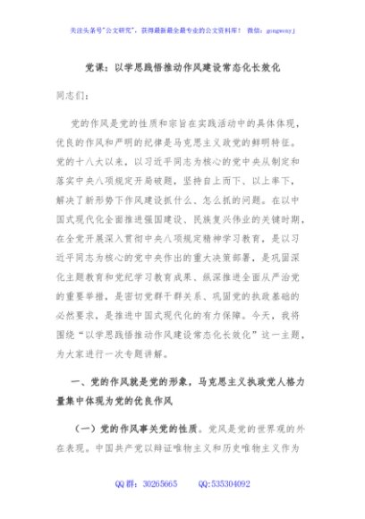 / 党课:以学思践悟推动作风建设常态化长效化