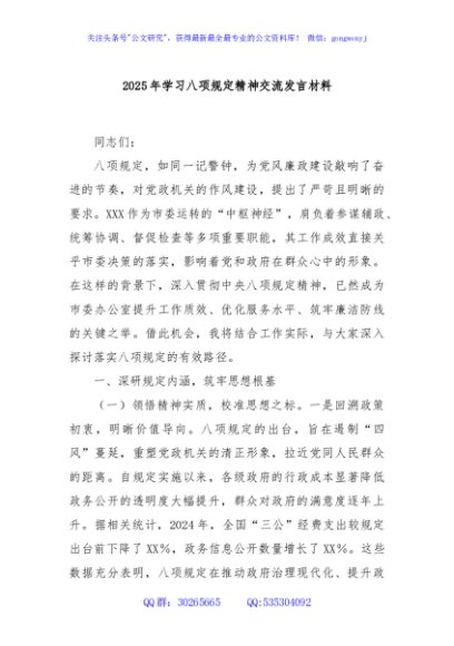 / 2025年学习八项规定精神交流发言材料