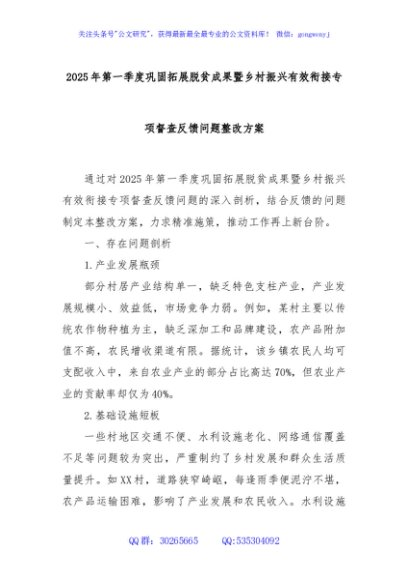 / 2025年第一季度巩固拓展脱贫成果暨乡村振兴有效衔接专项督查反馈问题整改方案