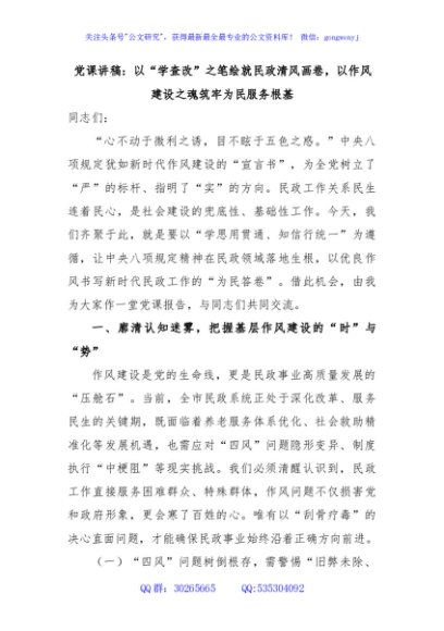 / 党课讲稿:以“学查改”之笔绘就民政清风画卷,以作风建设之魂筑牢为民服务根基
