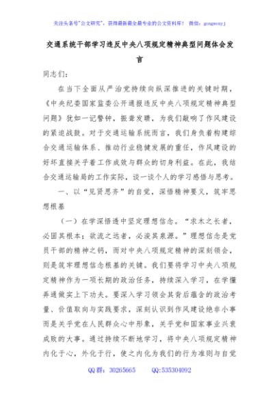 / 交通系统干部学习违反中央八项规定精神典型问题体会发言