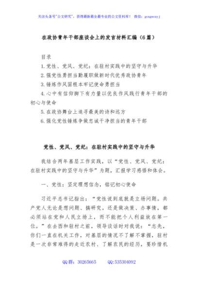 / (6篇)在政协青年干部座谈会上的发言材料汇编