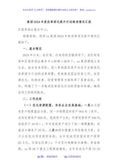 / 集团2024年度改革深化提升行动推进情况汇报
