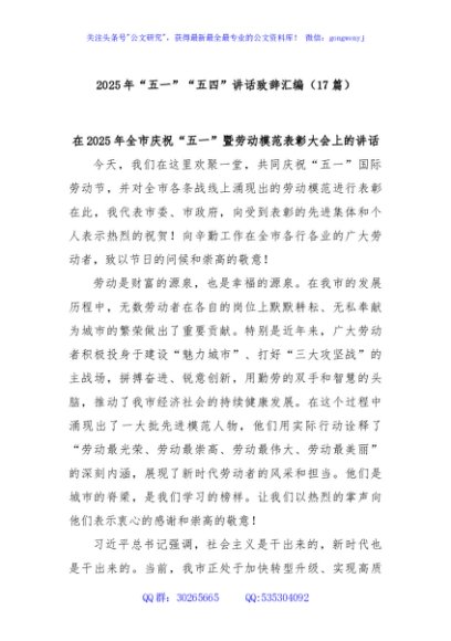 / (17篇)2025年“五一”“五四”讲话致辞汇编