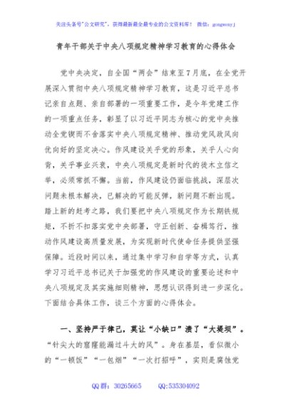 / 青年干部关于中央八项规定精神学习教育的心得体会